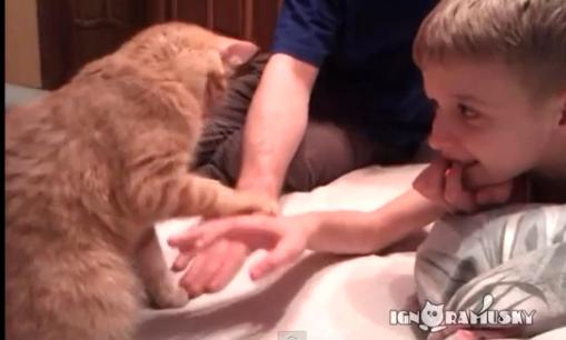 手を上げようとすると押さえ込むネコさん