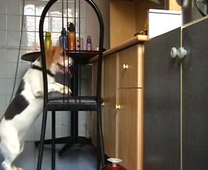 短足なワンちゃんは知能犯だったWW イスを移動させて盗み食い!!