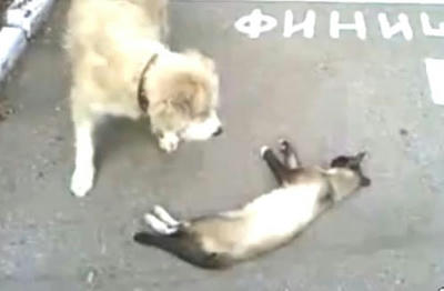 犬猿の仲のネコが死んだ 途方にくれるワンちゃん