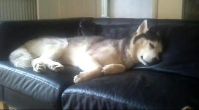 ピクピクしながら寝言を言い始めるハスキーワンコ|あに丸ズッキーニ