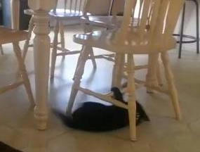 仰向けになったネコ様がイスをうまく使ってテーブルの周りを回転しまくる時計ネコ