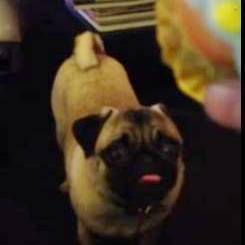 音に反応するおもちゃのようにボールを鳴らすと舌を出しちゃうパグちゃん|あに丸ズッキーニ