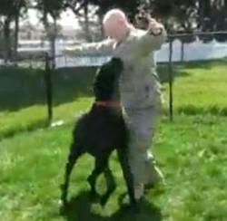 戦場からご主人様が帰ってきた大喜びのワンコと相撲になっちゃうご主人さん
