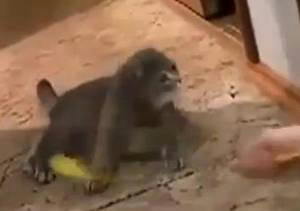 ネコさん遊んでいたけどチャイムがなるとΣ(゚д゚;)|あに丸ズッキーニ