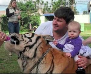 虎と仲良く暮らす家族たち