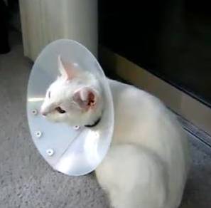 エリザベスカラーを使ってボケ倒すカワイイ白ネコちゃん