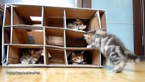 ダンボールのジャングルジムに大はしゃぎの子猫たち|あに丸ズッキーニ