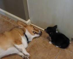 子犬の最大の攻撃をコーギーは受けてしまったWW|あに丸ズッキーニ