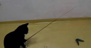 自分で釣って自分に釣られるクロネコさん(注 宅急便ではありません)