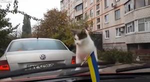 ネコさんが車の上に乗ってきたので追い払うためのワイパー攻撃動画