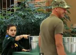 大人でも持ち上げられない荷物を軽々と落ち上げる少女のドッキリ