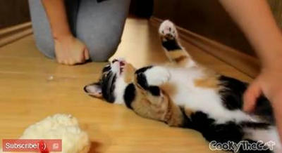 おもちゃに呼応してカワイク鳴くネコさん|あに丸ズッキーニ