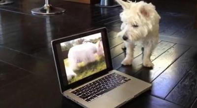 PCの動画から聞こえるワンコの声に反応して不思議そうに首をかしげるワンコが可愛すぎるWW|あに丸ズッキーニ