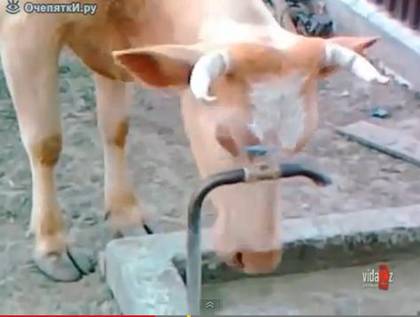 牛さんツノをうまくつかい蛇口をひねって水を飲んじゃう