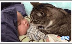 ネコさんも赤ちゃんにメロメロなのかな?