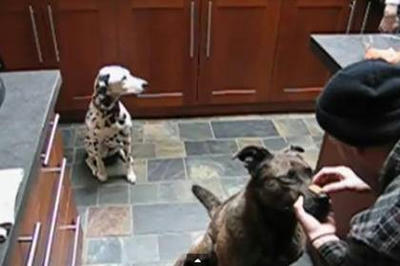 もちろんお利口さんのワンコはじっとしてオヤツを乗せているのをじっとして任せています