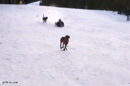 スベっているソリに飛び込むワンコ|あに丸ズッキーニ