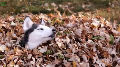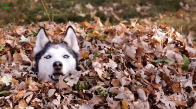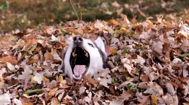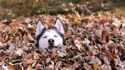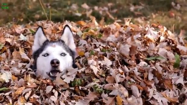 落ち葉の中で遊ぶワンコ達|あに丸ズッキーニ