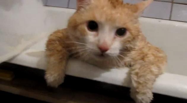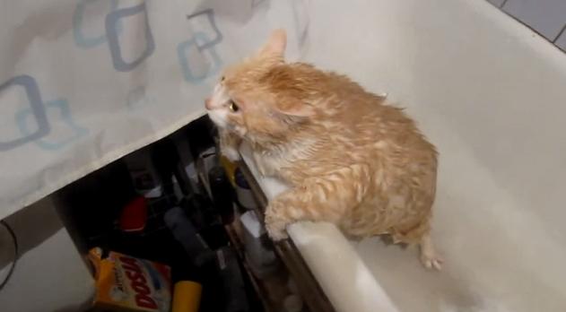 お風呂に必死に抵抗するも最後には途方にくれるネコさん