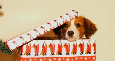 プレゼントになる予定だったワンコは一匹でパーティーを始めちゃった