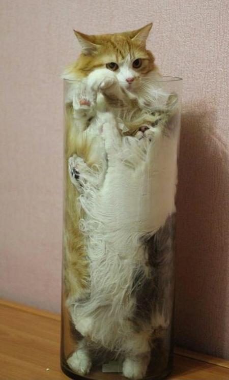 透明の容器に入っているネコさんとワンコ|あに丸ズッキーニ