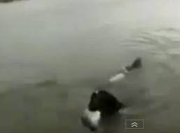ありえない水の中に飛び込んで魚を捕まえるワンコ