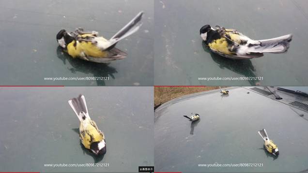 クルマにトリモチでつけたように張り付いている鳥達|あに丸ズッキーニ