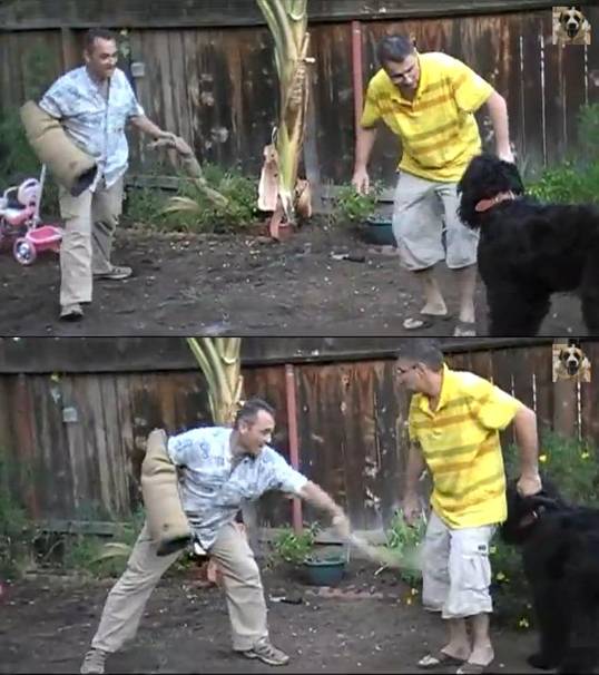 飼い主さんを叩いてワンコが飼い主さんを守ろうとするか実験しているみたいです。