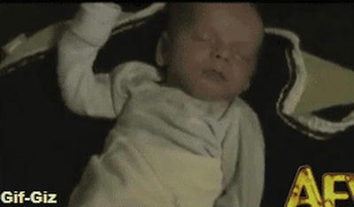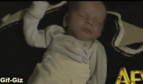 寝ているのにどちらかの手をあげないと気がすまない赤ちゃん