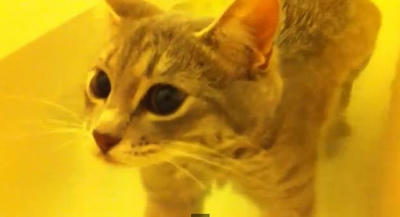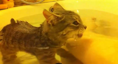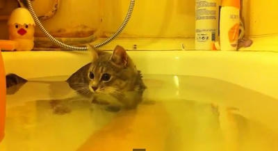 飼い主さんと仲良くお風呂をたのしんじゃう仔猫