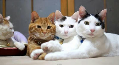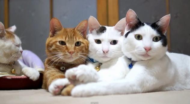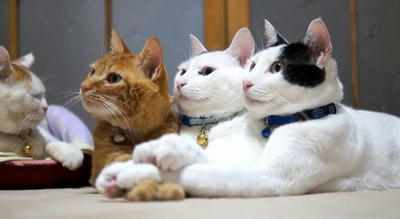 前足重ねる3匹のネコさんがカワイイ|あに丸ズッキーニ
