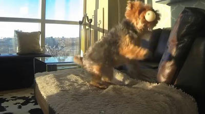 キャッチにことごとく失敗するワンコ