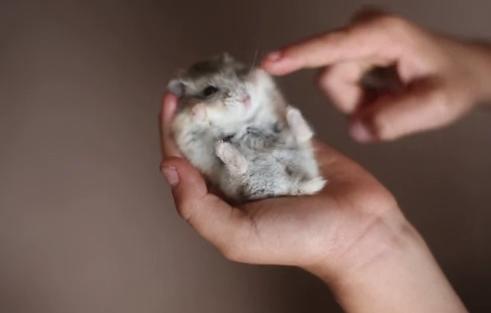 手の上のハムスターが後ろ足をバタバタさせてカワイイ