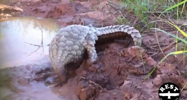 cgグラフィックで作った想像の動物にしか見えないセンザンコウの泥遊び