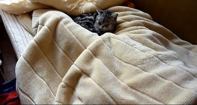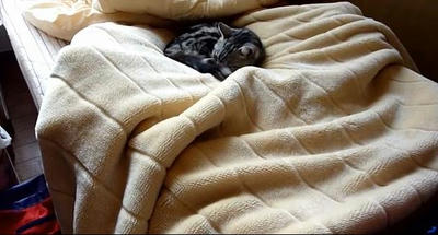 ネコさんを起こさないように起きる飼い主さん|あに丸ズッキーニ