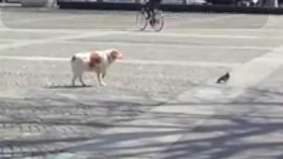 障害物なしでハトに近づくなんて無謀なことをワンコは挑戦していますWW