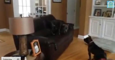 ソファーからソファーへジャンプするワンコ 部屋がメチャクチャにWW