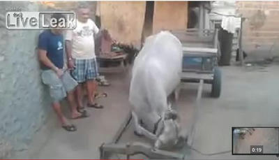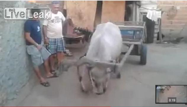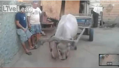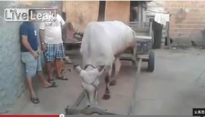 自分で荷車のセットアップをする牛さん|あに丸ズッキーニ