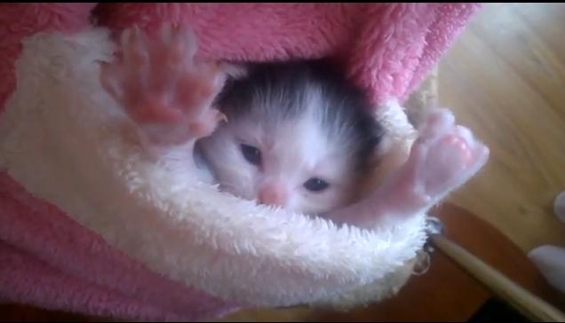 飼い主さんのポケットでバンザイしている仔猫がかわいい|あに丸ズッキーニ