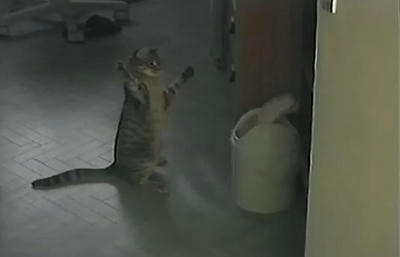 ゴミ箱はネコさんにとって油断ならない相手だった