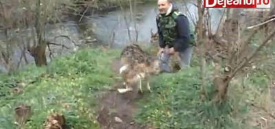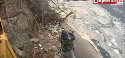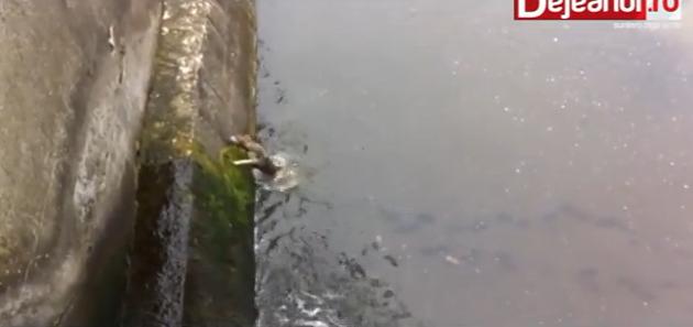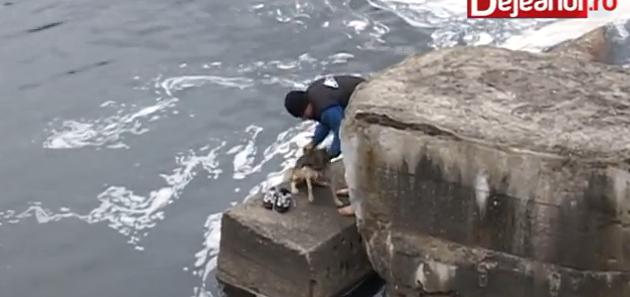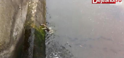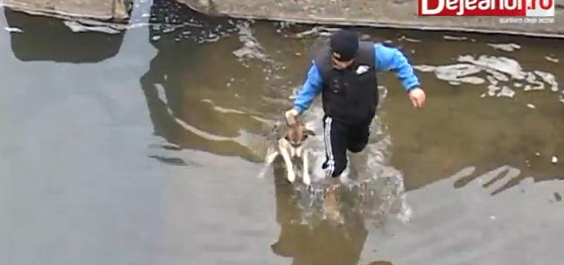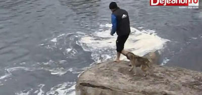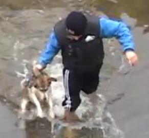 川から抜けだせないでいるワンコを救出した動画のようです