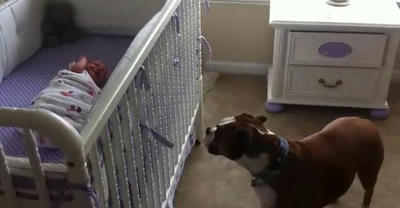 なんとワンコは赤ちゃんのベットの下に潜り込み