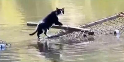 必要最小限だけど水嫌いのネコさんが湖を渡る動画です。