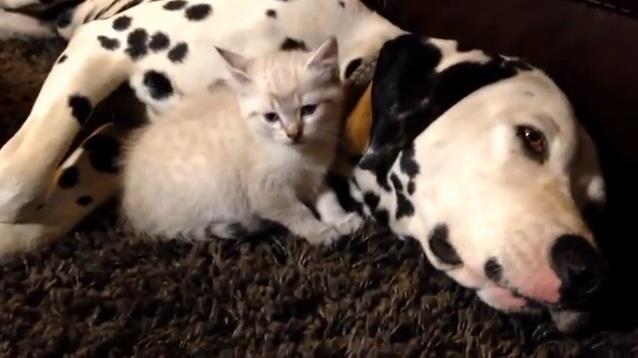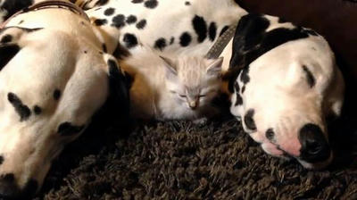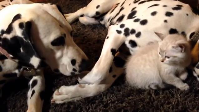 ワンコ2匹は仔猫がいるだけで幸せに包まれた気分みたい