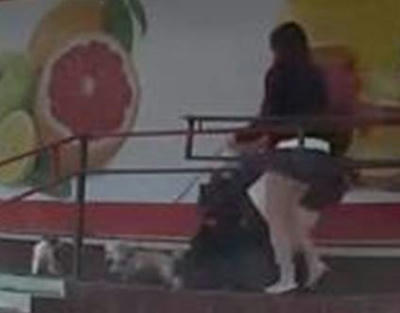 買い物&お散歩途中にネコさんに襲われるワンコ
