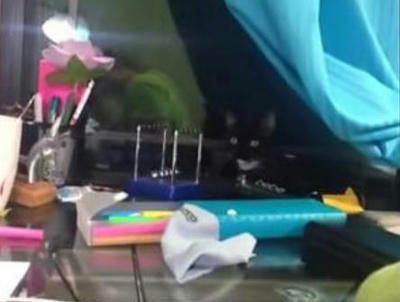 暗闇に紛れて黒猫さんがバランスボール(衝突球)で遊んでたWW