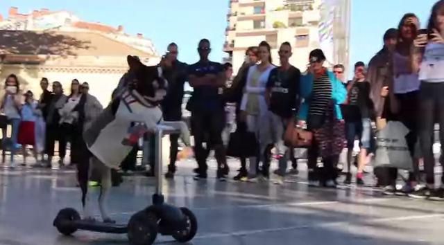 キックボードで遊ぶワンコ|あに丸ズッキーニ