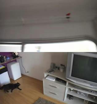 カーテンレールにネズミのおもちゃを置いてみた さてネコさんはどーするの?