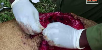 筋肉丸見えの重症を負ったライオンを治療した一部始終