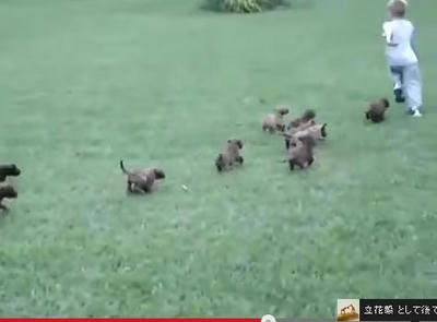 仔犬のダックスフンドの集団と追いかけっこ|あに丸ズッキーニ